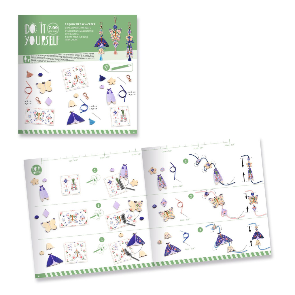 Három különleges díszt lehet készíteni több mint 100 matricával és kiegészítővel. A befejezés után ez a tökéletes dekoráció a táskához vagy a kulcstartóhoz.