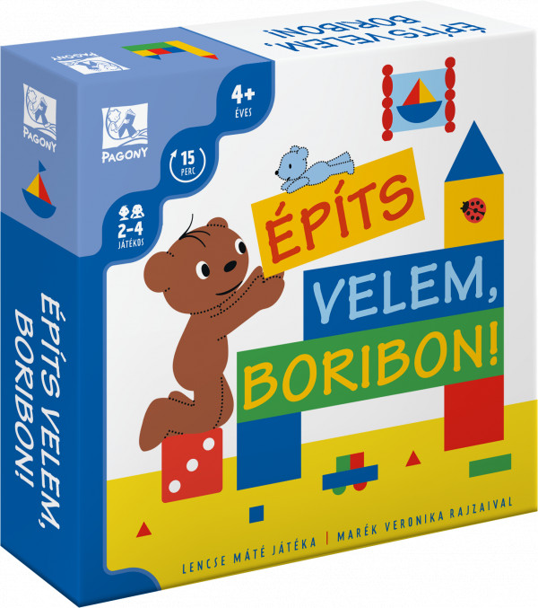 Boribon kiborította színes építőkockáit, és szeretne egy szép házat, kisautót vagy hajócskát építeni a kis kék mackójának.