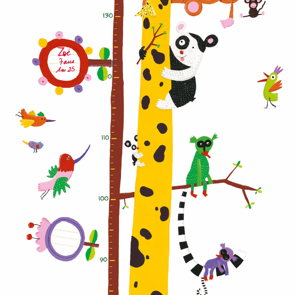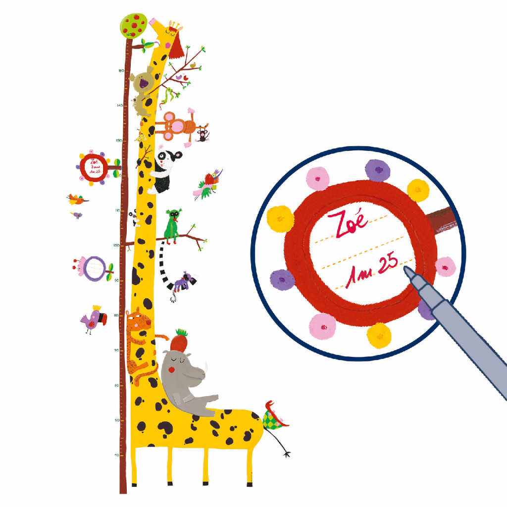 A felhelyezett matricával 160 cm-ig mérhető a gyermek magassága, az áthelyezhető matricákra írható a mérés dátuma.