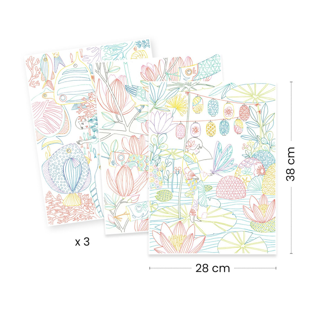 Japán téma, amelyet műalkotások gyűjteményeként terveztek! Minden csomag portfólióként van bemutatva, és 3 nagy képet tartalmaz, csodálatos japán motívumokkal illusztrálva. Különböző megközelítések kínálnak kivételes színezési ötleteket, színes keretekkel, világos vagy sötét hátterekkel és még sok mással. Akár követed a színpalettát és a művészek által javasolt sablonokat, akár szabadjára engeded a fantáziádat, az eredmény káprázatos, csak rajtad múlik, hogyan színezel!