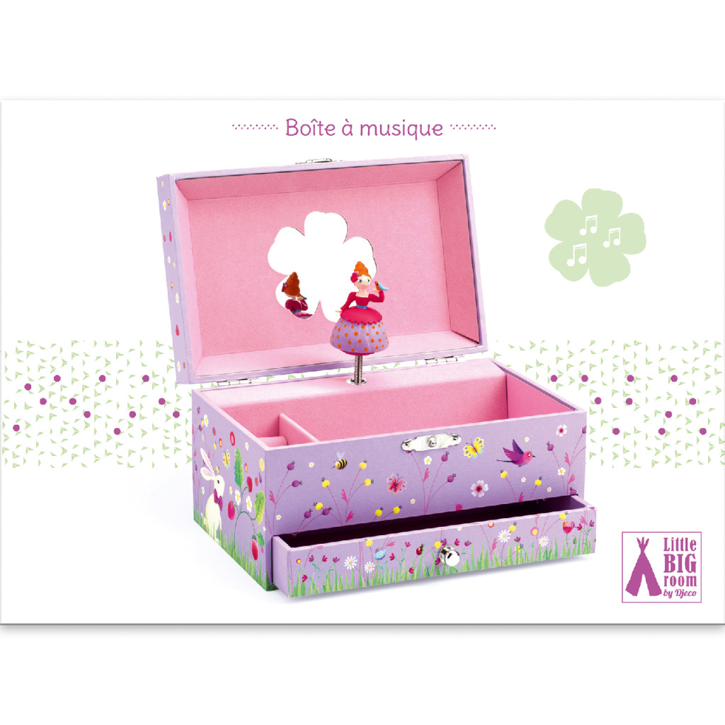 Miközben a hercegnő körbe táncol a zenére, kiválaszthatod, hogy melyik ékszereidet szeretnéd aznap felvenni.Az ékszerdoboz fából készült, belseje lila plüss bevonatú. Alul egy kis fiókocska is található ahol szinten lehet fülbevalókat, karkötőket és nyakláncokat tartani. A kis hercegnő figura műanyagból van.