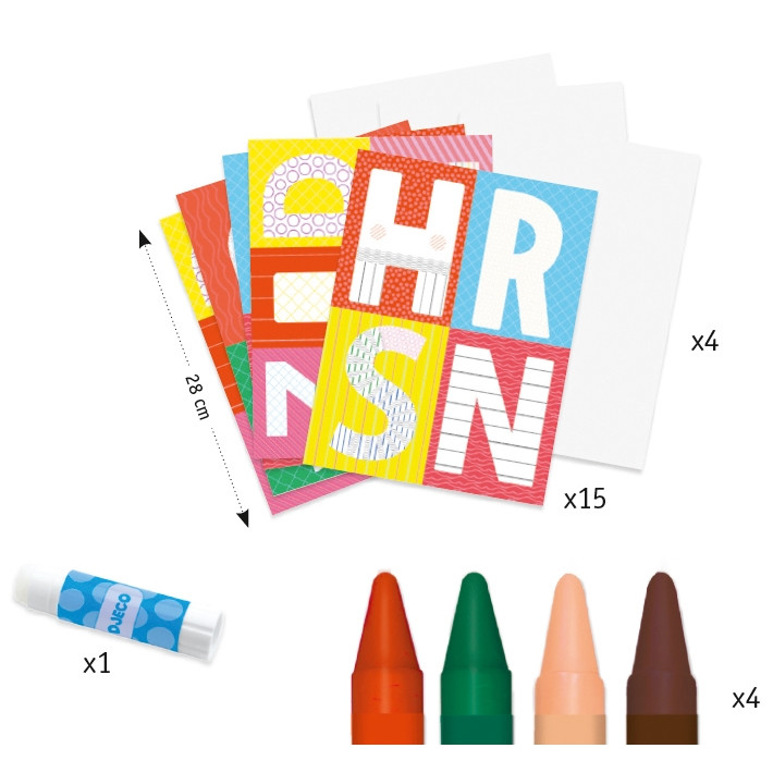 Kreatív és tanulságos készlet van a dobozban, amely többek között vastag kartonból készült kivágott, perflorált betűk sokaságát tartalmazza, amelyeket színezhetnek és matricákkal díszíthetnek a gyermekek. Szavakat rakhatnak ki a betűkből és felragaszthatják az őket a háttérlapokra. Az útmutató lépésről-lépésre bemutatja, mit hogyan és néhány ötletet ad a gyermekeknek arra, hogyan tehetik tréfássá, egy-egy szem felragasztásával és más kiegészítőkkel a nyomtatott nagybetűket. Így ismerkedni a betűkkel valóban mókás és szórakoztató, jókedvűen ismerkedni a későbbi tananyaggal pedig egyszerűen remek!
