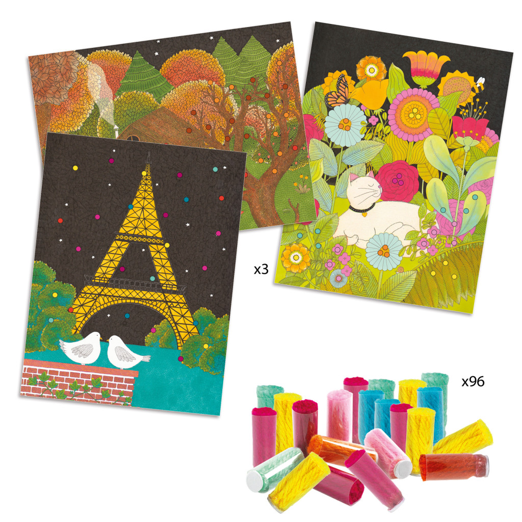 Kis öntapadós hengerek szépen illusztrált képek pomponnal való kitöltéséhez. A gyermek felragasztja a csöveket a táblára, majd eltávolítja az átlátszó részt, és megjelennek, kinyílnak a színes pomponok! Varázslatos!