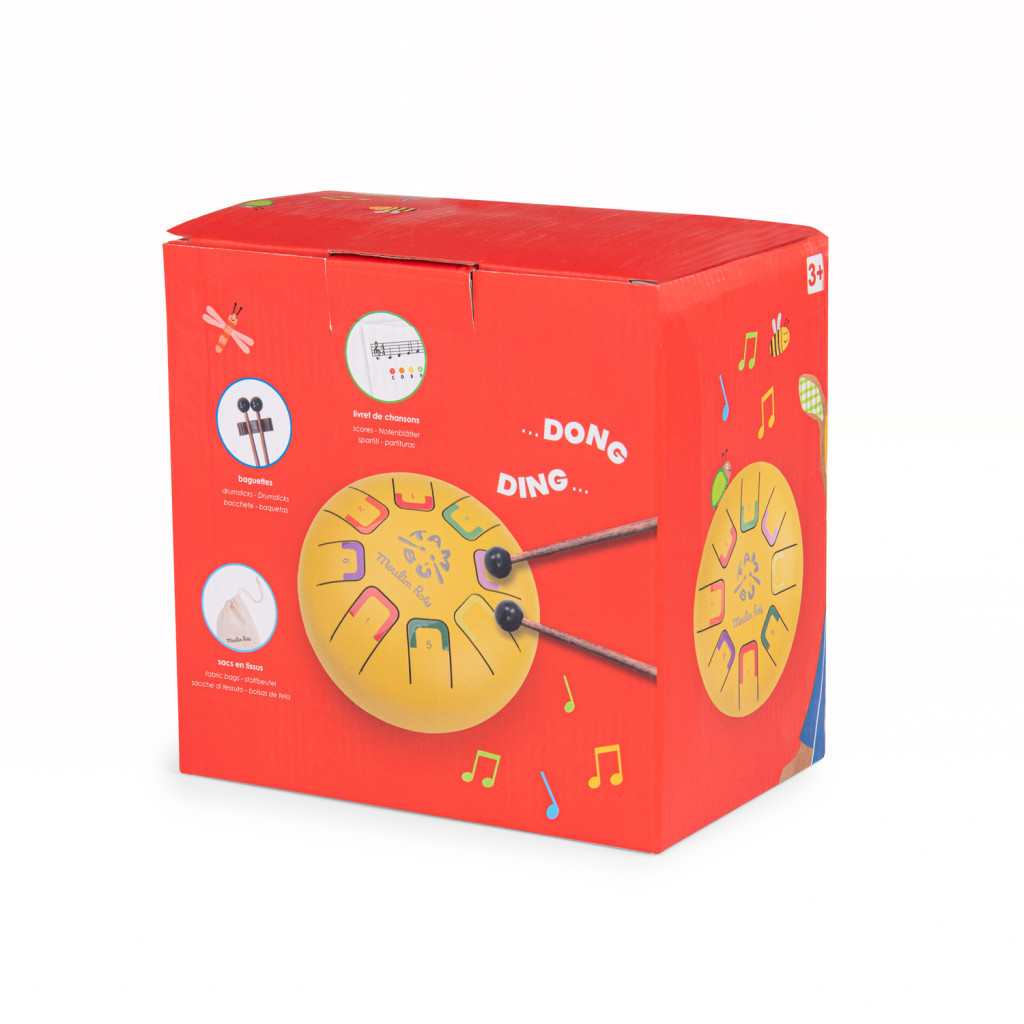 A hangszer megszólaltatása egyszerű, így a kicsik hamar sikerélményt szereznek, míg a nagyobbak elsajátíthatják vele a zenei alapismereteket. Ujjbeggyel és ütőkkel is játszhatunk rajta, így kapjuk a gyönyörű hangokat és dallamokat. A termék tartalmaz egy színkóddal is ellátott kottafüzetet, hogy a legkisebbek is használni tudják.