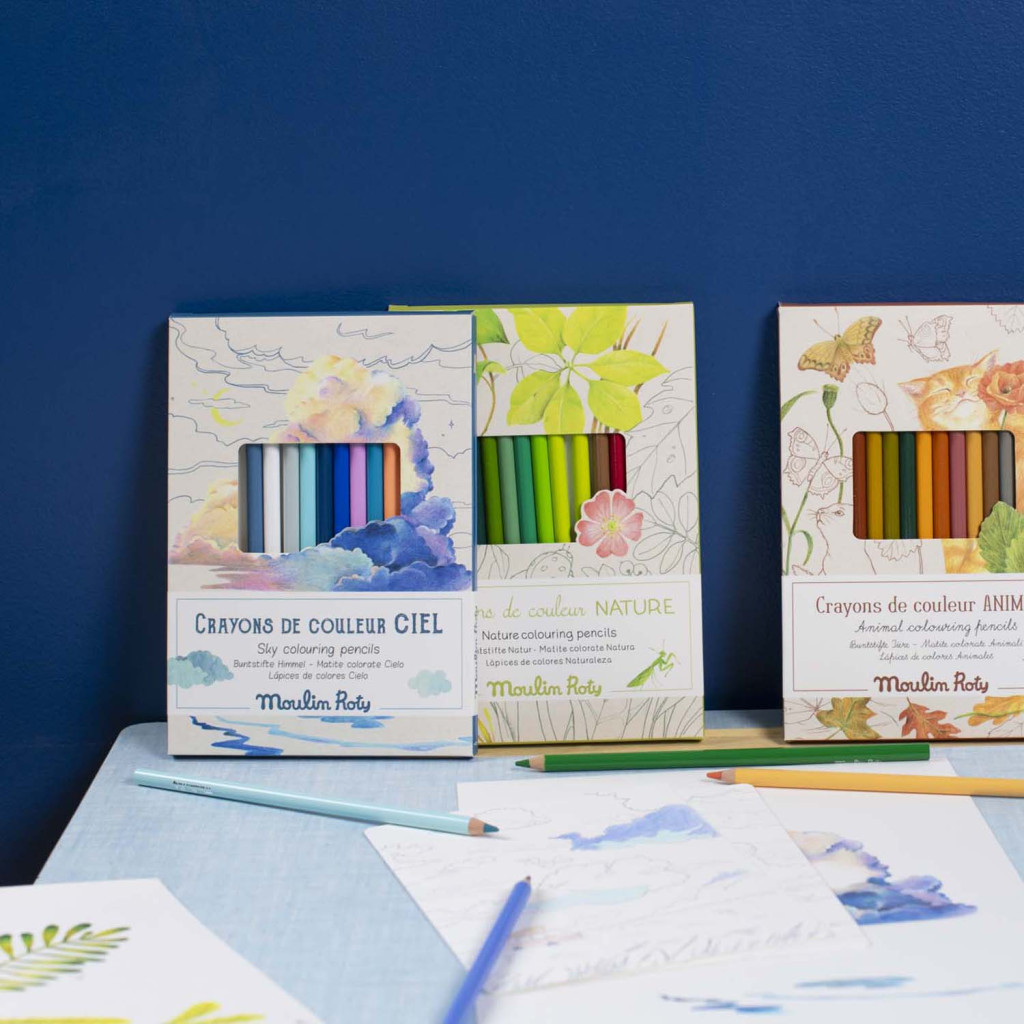 Moulin Roty - Kiskertem - 12 db-os színes ceruza készlet és színező - Égbolt